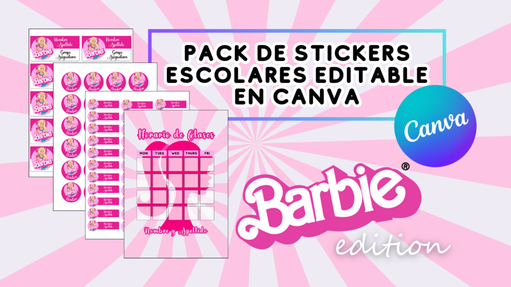 Pack de Etiquetas Escolares Barbie - Editable en Canva